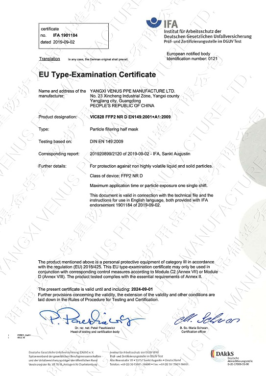 欧盟CE认证.CE证书 FFP2 (VIC821 FFP2)