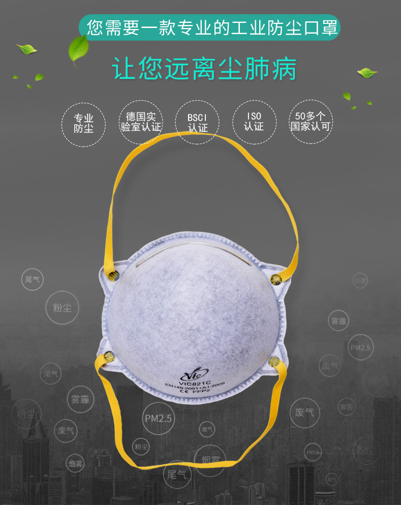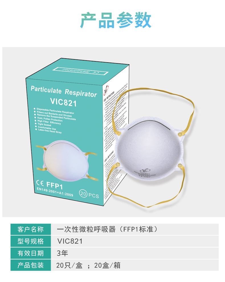 • iITEM NO:VIC821C-FFP1 FFP1杯型活性炭口罩(FFP1标准)