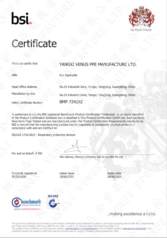 • ITEM NO:VIC9511V-P1 (WITH VALVE ) (STANDARD:AS/NZS 1716:2012 - Respiratory protective devices) (澳洲/新西兰 AS/NZS 1716 :2012标准) Standard_Benchmark