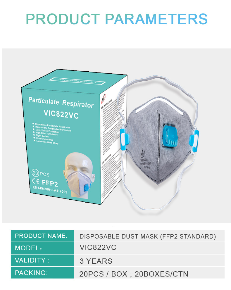 • Item No.: VIC822VC-FFP2 head band Product name: Disposable Particulate Respirator(FFP2 Standard)
